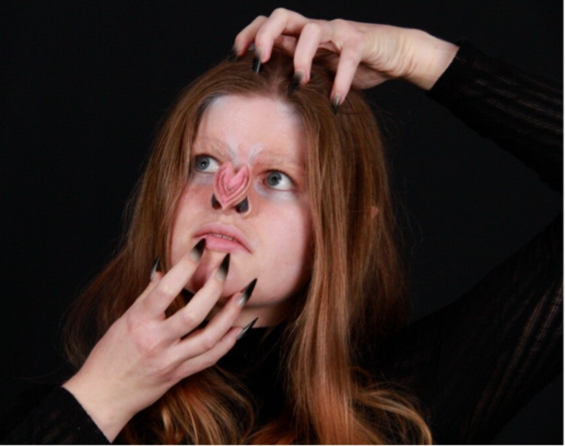 Het eindexamen van sfx face off. Hierbij moesten we een karakter maken met een eigengemaakte neus van siliconen, ik heb gekozen voor een vleermuis mens hybride