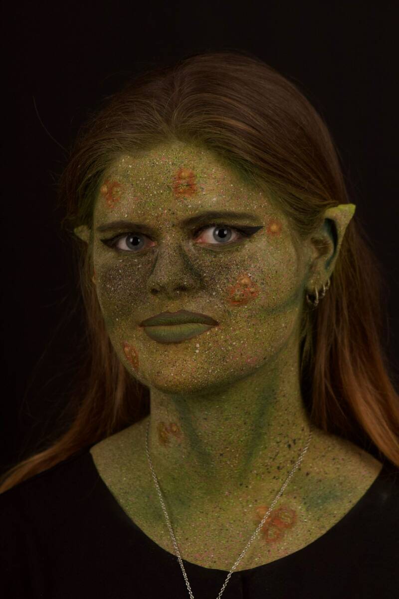 Het eindexamen van allround grimeur/sfx make up artist. hierbij mochten we zelf verzinnen wat we gingen maken. zolang we maar 3 sfx producten gebruikte. Ik heb een mens vogel hybride gemaakt.